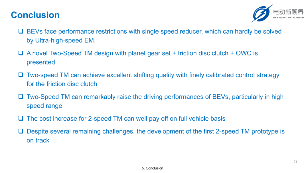 雷蔡总工程师在报告中提到:“首款两挡变速箱原型机的开发已经在推进中,虽然有挑战,但整体方向是明确的 —— 两挡变速箱会成为电动车传动系统的‘最优解之一’。”