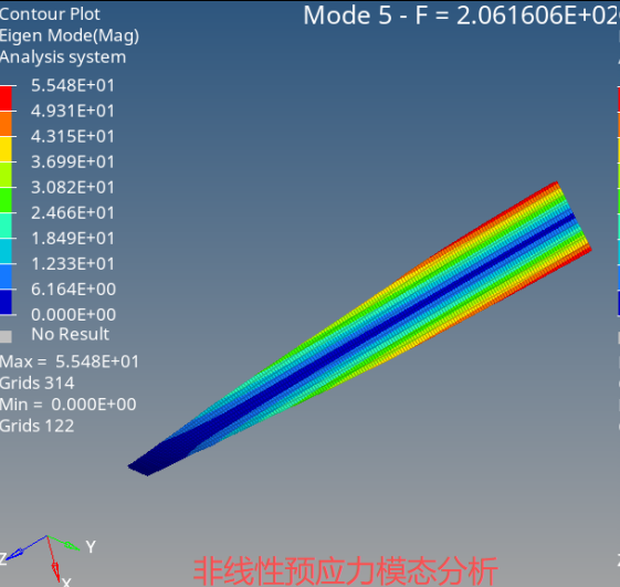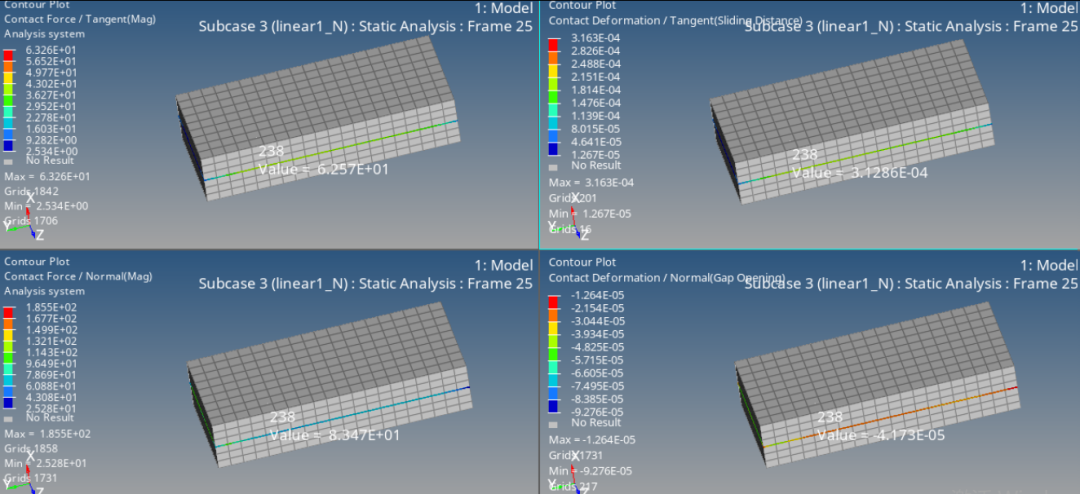 模态分析和线性静力学分析都是线性分析,由上面的分析可知,前4阶模态的振型与频率一致,说明线性分析也考虑了法向刚度和切向刚度,那么线性分析中这个切向和法向刚度怎么赋予的?