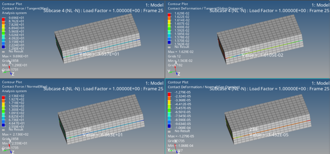 非线性静力分析,法向刚度依然是2000000,但是切向刚度计算值受到外载荷、摩擦系数、接触刚度的影响不是定值