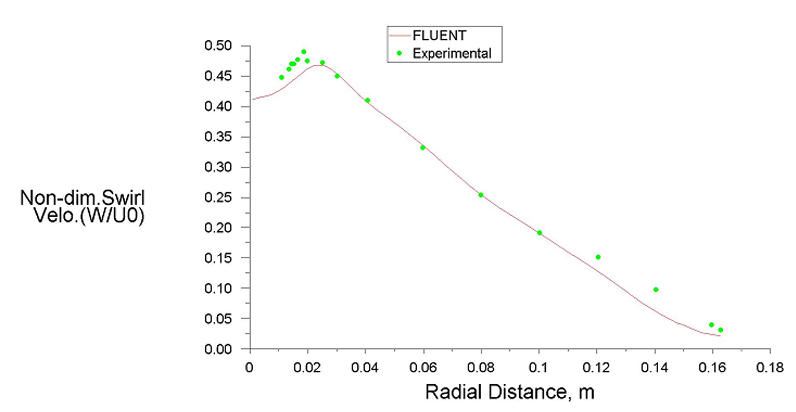 对X = 0.175米时漩涡速度进行计算,可以得到如下图所示的结果,由图可以发现,该结果与Fluent官方案例的结果一致:
