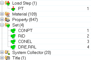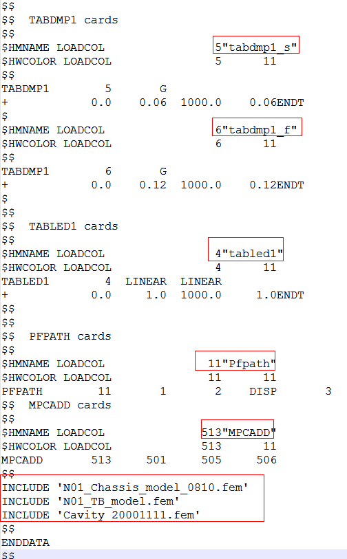 一般将底盘模型(带接附点衬套)作为一个整体,模型树如下图20.9所示,并去除开始及结束关键字,如图20.10所示;导出完整的底盘系统模型如图20.11所示,即N01_Chassis_model_0810.fem。