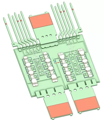 由onsemi和Ansys合作开发的自动化MFIT流程经过验证,在使用SiC MOSFET功率模块(左)3D模型来预测成品(右)性能方面非常准确。