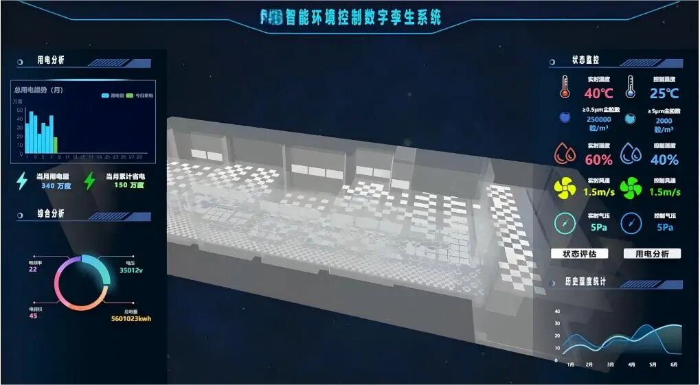 中源广科的核心武器,是专为洁净工程打造的 Clabso 数字孪生驱动智能环境控制系统。它就像给洁净室装了 “透视眼”,能在虚拟环境中精准模拟空气流动、传热、污染扩散等物理现象。