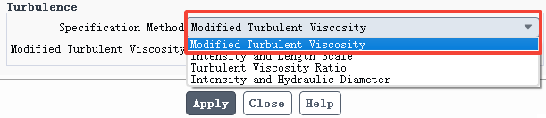 当湍流模型为Spalart-Allmaras模型(一方程模型)时,边界湍流参数会出现修正湍流粘度Modified Turbulent Viscosity的设置