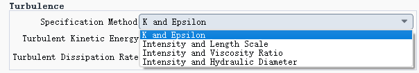 虽然进出口边界条件的类型很多,但是这些边界条件存在一些共同点,那就是当使用湍流模型时,边界条件选项中都会出现湍流参数的设置,如Turbulent Viscosity Ratio、Hydraulic Diameter等