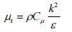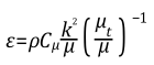 对于标准的k-e模型,其中最重要的假设就是用湍动能k和湍流耗散率ε来表示湍流粘度μt,公式中的Cμ与上面公式相同。