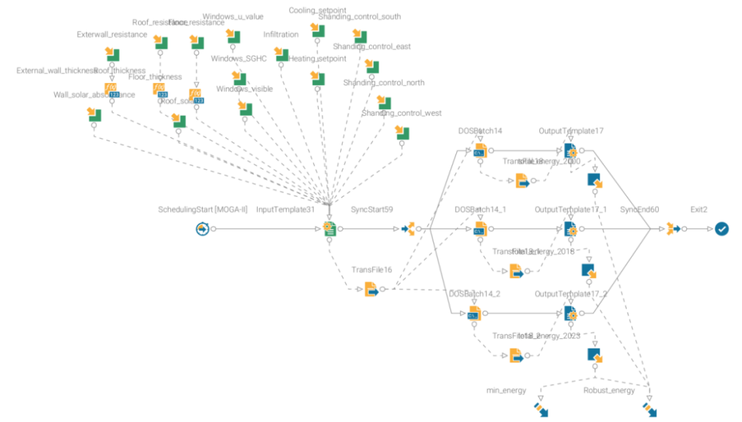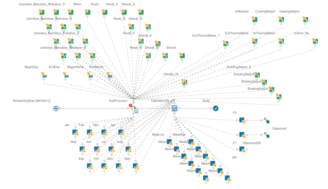 这是整个工作流的引擎。我们使用modeFRONTIER的流程节点来调用EnergyPlus。