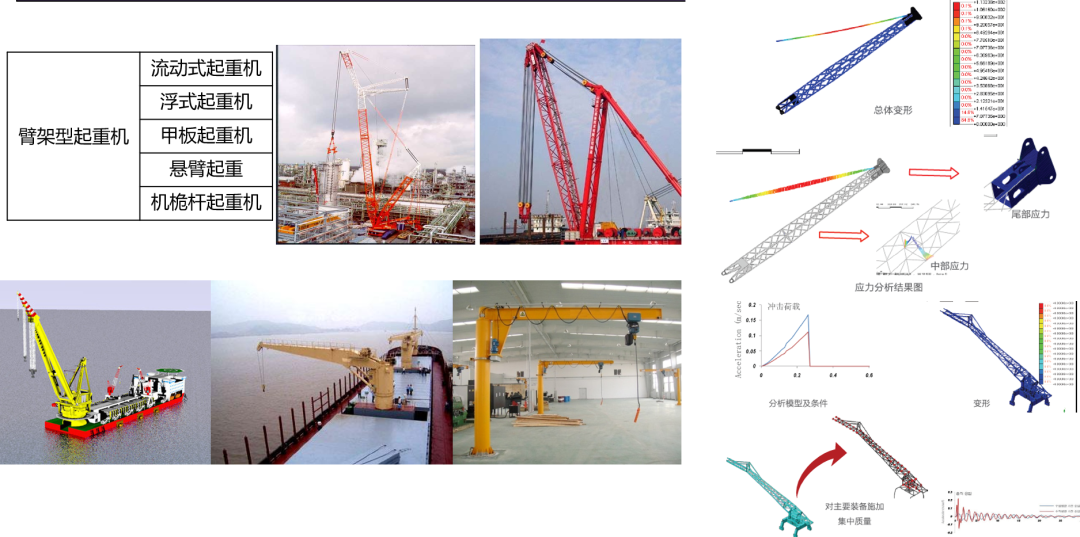 其中静强度、刚度分析占比较高,结合规范要求进行验算比对非线性分析(材料非线性和接触非线性和几何非线性)和模态分析次之疲劳分析与优化(轻量化)设计在对于部分构件和零部件上有计算要求设计计算方法