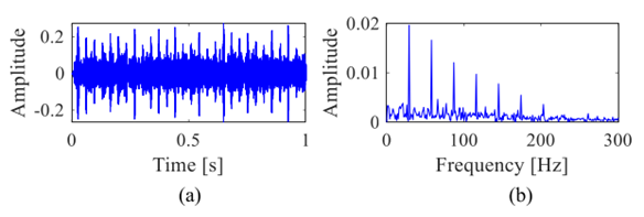 (1)时域上可见明显的故障周期性冲击;