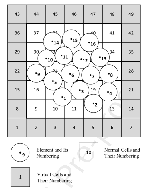 Fig.2 Spatial Discretization Strategy with Grid Cell Division, Virtual Boundary Layers, and Element Indexing