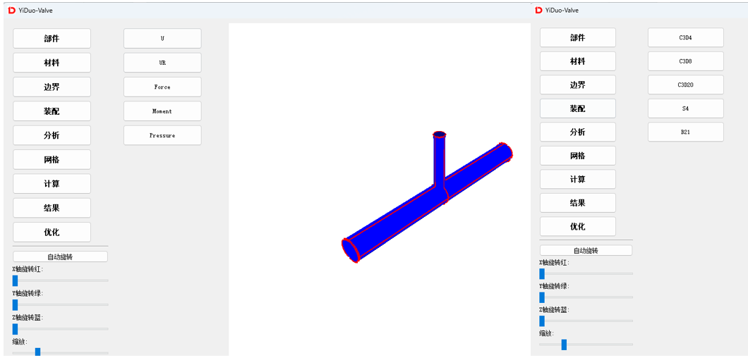 模型建立与材料赋予:支持用户快速建立管道阀门的三维模型,并赋予相应的材料属性。