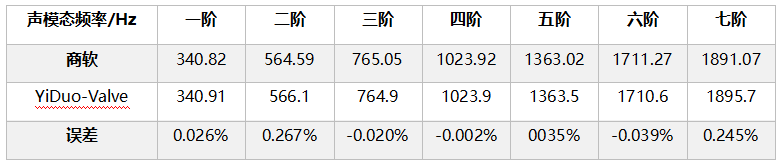 在声模态、结构模态、频响分析以及声传播分析等多个方面,YiDuo-Valve的分析结果均与国际知名商业软件高度吻合,甚至在某些特定场景下表现出更为优越的性能。