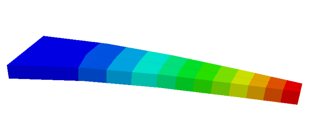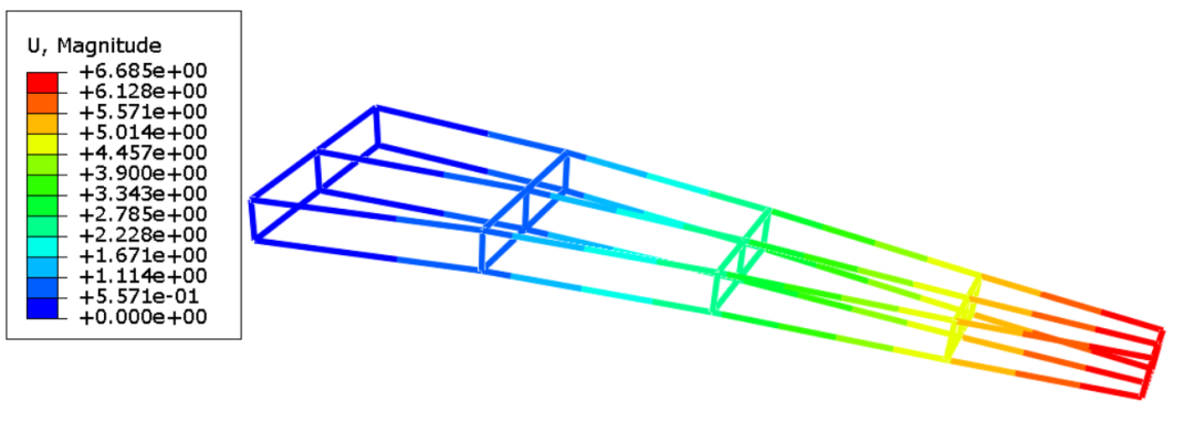 在完成上述步骤后,此时已经得到了模型上各个节点的位移。我们采用VTK库实现机翼三维变形的刷新以及变形云图的渲染。