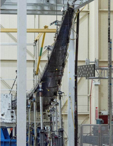 机翼2.5g静力试验。图来源:《Static Loads Testing of a High Aspect Ratio Tow-Steered Wingbox》