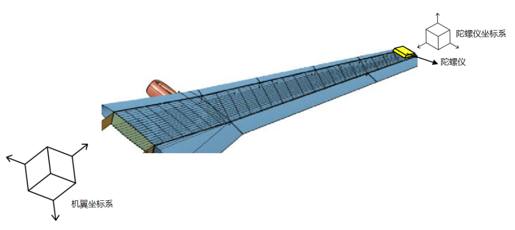 目前摄影测量、高精度陀螺仪等新的测量技术已经开始应用于结构试验,这些设备自身的测量坐标系与机翼坐标系不同,测量的位移结果就需要做坐标系转换。