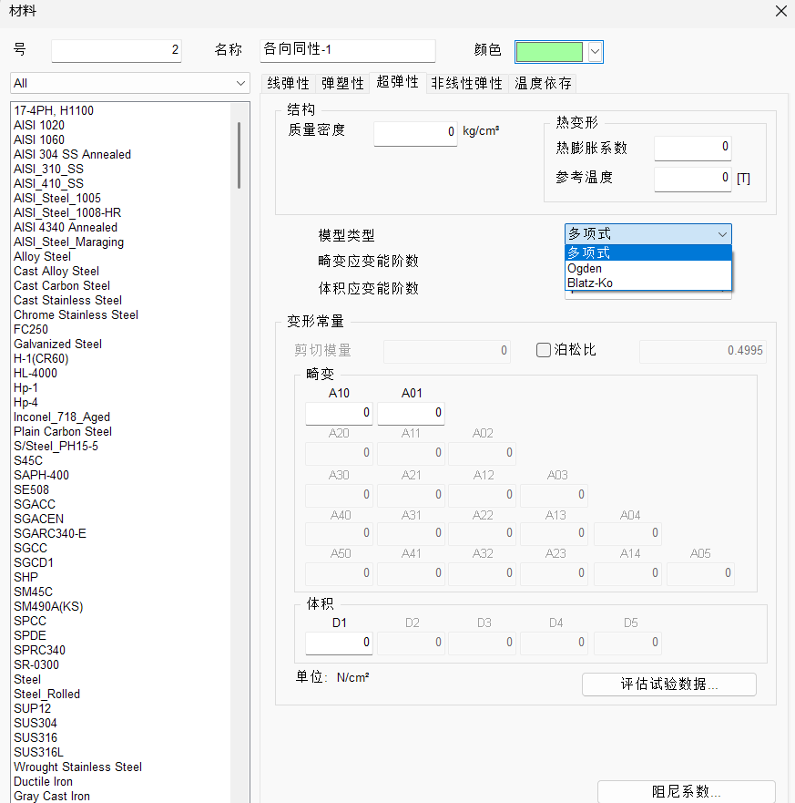 支持到6次,且支持奥格登模型、穆尼-里夫林模型和新虎克模型。初始剪切刚度