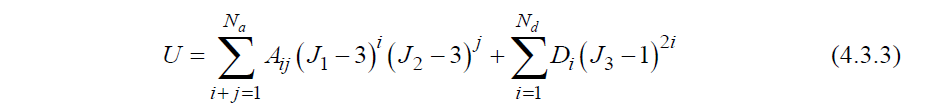 奥格登模型的势能可由主伸长率(principal stretches)定义如下