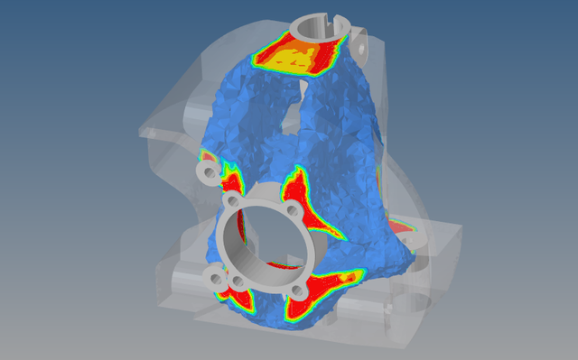 与周围部件(如轮毂、制动盘、转向拉杆)可能发生干涉的区域,本例研究的转向节设计空间与非设计空间如图1所示,红色 区域为设计空间: