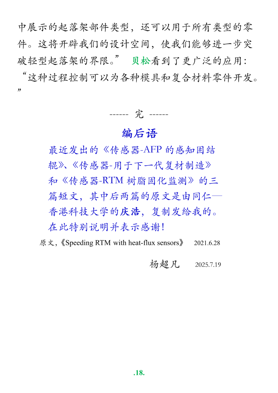 复材技术·传感器-AFP的感知固结辊杨超凡简介:飞机制造高级专家,近年专攻民机复合材料。原航空工业部首批研究员级高级工程师,享受国务院特殊津贴。来源:碳纤维生产技术