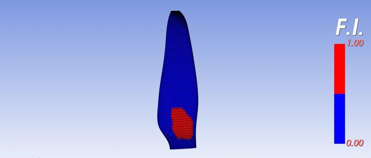 静力失效的两种分析思路《谈材料力学行为研究的标配—ABAQUSUMAT》一文中,我们介绍了UMAT的一些基本信息,从现在做深入研究和论文的角度来说,研究材料失效似乎已经离不开子程序。然而在工程中,我们常常面临的场景是强度校核,而非一定要把材料失效的点算准。目前对于复合材料的静力失效主要有两种思路:(1)思路一,渐进失效分析。该思路的目标是计算结构的失效极限。对结构逐级加载,并监测失效单元,对加载过程中出现失效的单元进行性能折减,当失效单元数量达到一定程度,载荷变形曲线掉落,此时认为结构失效。(2)思路二,校核安全。在完成应力计算后,采用一定的强度准则进行失效判断,从而确定设计载荷是否满足安全要求。思路一通常适用于结构简单的模型,并需要开发专门的UMAT本构程序,且对单元的使用限制很大。实际的结构件大都铺层较厚,采用该思路需要将每一层进行单独的网格离散,给网格质量控制与生成带来了困难。相比之下,思路二更适用于工程计算。我们今天就给出一个针对复合材料构件校核安全的实现方法。基本思路ABAQUS内置了复合材料壳的2D强度准则。如果是实体单元或者自定义强度准则,就需要我们脱离ABAQUS对结果进行后处理。思路如下图,该思路的适用场景是,单元的层数和实际铺层并不需要对应,即单元层数可以少于铺层数。ABAQUS的铺层模块会根据铺层信息和单向带材料参数,自动完成等效材料参数的计算。上述步思路,一直到“静力分析完成”都是在ABAQUS中完成。后续步骤则需要脱离ABAQUS实现,需要重点解决两个技术问题。需要解决的技术问题1—材料参数等效在已知铺层和单向带材料参数的情况下,我们需要完成铺层后材料的等效强度参数预估,方可代入强度准则进行失效判断。工程上一般采用对称铺层,复合材料力学中也给出了对称铺层的等效弹性模量和强度预测方法。我在实际应用时,引入渐进损伤的思想,逐层进行材料失效的判断,获得载荷应力曲线,取掉落点之前的应力作为失效应力,见下图。这个复合材料强度理论计算程序是用MATLAB编写的。层合板强度预测(横坐标迭代次数,纵坐标为应力/MPa)以下是基于复合材料力学理论方法预测强度的具体描述:求解层合板的极限载荷的计算步骤大致如下:(1)先设定各个外载荷之间比例,即按各载荷分量比例加载;(2)根据各单层板性能,计算层合板刚度。对于对称层合板而言,各单层几何尺寸和材料性能都对称于中面,也就说明对称的层合板中拉伸与弯曲之间不存在耦合关系,即。(3)求各单层在材料主方向上应力与外载荷之间的关系。(4)将各单层应力分别代入强度准则关系式进行比较,确定哪一层单层先破坏。(5)将已破坏的单层板从整体层合板中排除,但仍保持其余单层板的几何位置,重新计算层合板刚度。(6)重复上述过程,计算各层的应力,再用强度理论进行比较,检查其他单层是否破坏,再计算刚度和检查,直到剩下的层合板能继续承受增加的载荷为止,当所有单层板均发生破坏,此时的载荷即为层合板得到极限载荷。如下图所示,1方向为单层板纤维的主方向,下图向与x方向之间的夹角称为纤维方向角。对于角铺设单层板刚度矩阵的形式如下:上图为完整的复合材料强度预测的流程框图,包含输入值与输出值。其中将重点解释如何预测复合材料层合板的强度,即3号、4号以及5号流程框的内容。求解层合板开始发生破坏的失效强度值。由已知的单层板基础力学数据、层合板铺设层数与铺设角度等原始数据计算二维刚度矩阵,并利用转轴公式得出二维刚度矩阵的转换矩阵。暂时只考虑该层合板承受面内载荷的工况,利用二维刚度矩阵转换矩阵可求出拉伸刚度矩阵。对于刚度矩阵求逆矩阵,即可得到其柔度矩阵。将所加载的外载荷按其比例化为。则所加载的外力可利用应力应变公式求出中面应变矩阵,如公式(2)所示,其中,分别为:根据单层板应力应变之间的关系式,可以求解得每一层的应力,根据公式(5)计算出各单层板在材料主方向的应力,将数据带入强度理论准则中,从而解得各单层的失效载荷。进一步比较数据大小,数值较小的为层合板第一失效载荷值。此时求出各层应力大小,并与材料的基本强度数值比较,得到达到材料基本强度大小的应力,该方向即为单层板破坏方向。层合板承受第一失效载荷值后发生破坏,剩余层继续承受载荷并进行第二次计算。移除已发生破坏的单层板,求解削弱后的剩余层合板刚度。应注意单层板破坏方向刚度为0。同时该单层板因有材料主方向破坏而不能抗剪,故。继续计算层合板拉伸刚度矩阵及柔度矩阵。同上述步骤1中相同,继续求应变和应力并带入蔡-Hill强度理论公式,找到下一处破坏位置及方向。继续移除已发生破坏的单层板,将削弱后的剩余层合板重复上述步骤。直到剩下的层合板能继续承受增加的载荷为止。当所有单层板破坏,此时的载荷即为层合板的极限载荷。需要解决的技术问题2—ABAQUS结果提取与失效分布渲染ABAQUS的odb结果文件是无法在外部解析的,这是其自定义的一种类似于数据库的文件。但是ABAQUS后处理模块提供了将结果导出为csv格式的接口。ABAQUS导出的csv格式结果有了这些应力数据,我们就可以代入强度准则进行失效分析了。比如用Tasi-Hill强度准则进行失效因子的计算:F.I.大于1代表结构破坏。此时我们就想把失效因