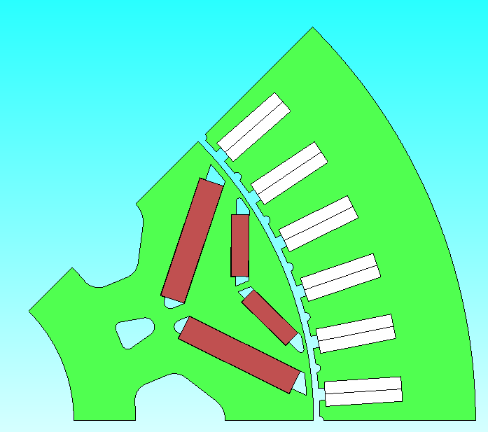 如示意图所示,转子辅助槽通常开设在永磁体磁极之间的区域(即隔磁桥或极间区域),是一系列精心排布的小槽。