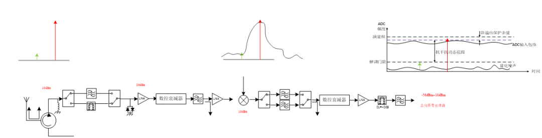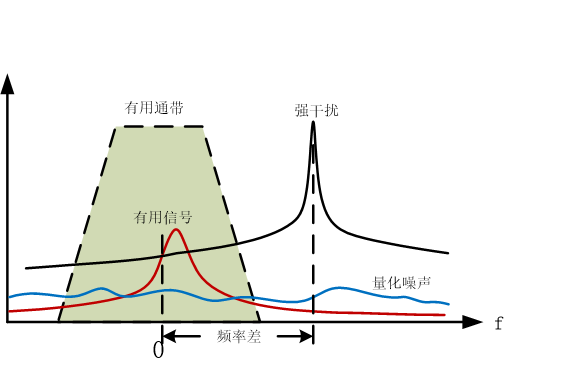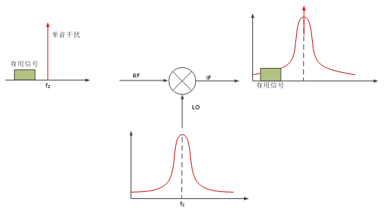 强干扰信号将本振的相位噪声"搬移"到了中频带内,相当于抬高了接收机的噪底,严重影响接收机对大动态范围信号的接收能力。