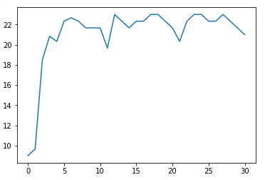 基本上最后会在30左右浮动。不过这个是我给的比较好的结果。有的时候,它也会收敛在一个不太高的水平上。