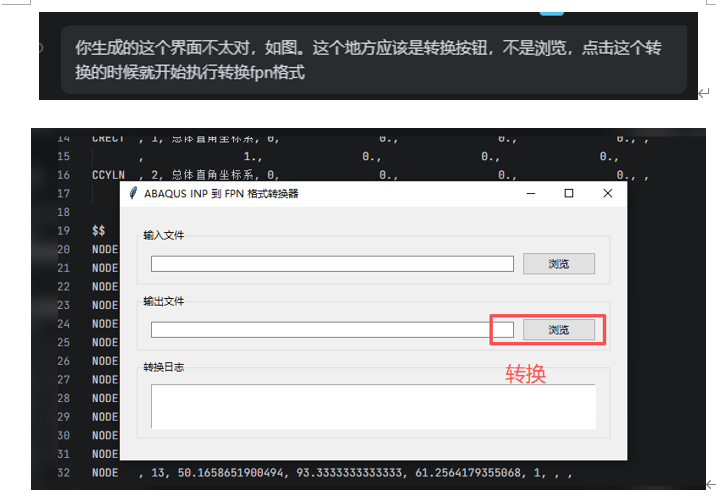 但是日常工作中,几乎不接触编程的土木工程师是绝大部分人,或者从事工作以来就不接触编程了,编程语言忘记的差不多了,使用代码处理这个文件对人的要求就变高了。之前我也是这样认为的,但是后面随着AI的发展,我们可以借助AI帮我们写出想要的小插件或者小软件。AI编程软件以字节的Trae 为例,我们现在想让他写一个ABAQUS的inp文件转fpn文件的小程序。