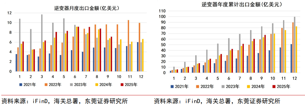 根据海关总署数据, 2025 年 1—9 月, 国内逆变器累计出口金额达 67.58 亿美元,同比增长 6.74%; 9 月, 国内逆变器出口金额达 7.13 亿美元, 同比增长 5.01%, 保持同比增长趋势。