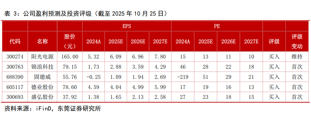 建议关注全球化布局体系完善, 具备较强规模优势及技术研发创新实力的国内逆变器头部企业, 建议关注阳光电源(300274) 、 德业股份(605117) 、 锦浪科技(300763)、固德威(688390) 、 盛弘股份(300693) 。