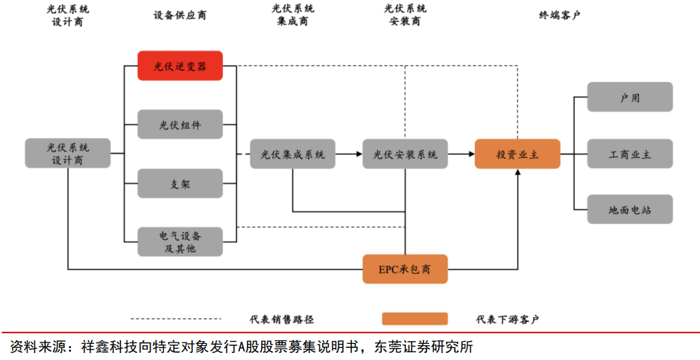 光伏发电系统在提供给最终用户使用之前, 需经历系统设计、 部件集成及安装环节,虽终端用户均相同, 但设备也可以由中间环节的某一类客户采购, 故光伏逆变器下游客户既包括了投资业主等最终用户, 也涵盖了光伏系统集成商、 EPC 承包商(Engineering Procurement Construction, 指公司受业主委托, 按照合同约定对工程建设项目的设计、采购、 施工、 试运行等实行全过程或若干阶段的承包) 、 安装商等中间环节的客户。