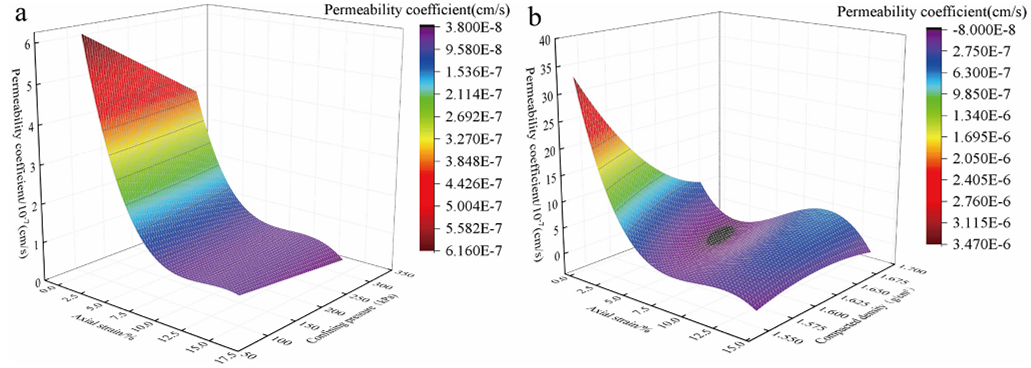 Abstract: This study investigates the pore structure evolution and permeability mechanis ms of compacted clay in dumps during shear deformation, providing critical insights for resource development, hazard prevention, and ecological restoration. Focusing on Yuanbaoshan mine’s inner dump clay in Inner Mongolia, we used triaxial shear permeability testing, MATLAB fitting, and MatDEM discrete element development and simulation to explore permeability evolution under varying compaction densities and confining pressures during shear. Results demonstrate that the permeability of compacted clay evolves through three distinct stages—rapiddecline,gradual decline,and stabilization—with increasing shear strain.The initial stage features abrupt permeability reduction driven by particle rearrangement and pore collapse, followed by a decelerated decline phase where fine particles migrate to fill pores, ultimately reaching permeability stabilization. Under identical conditions, elevated confining pressure enhances deformation adaptability while higher compaction density reduces permeability; both factors nonlinearly suppress permeability by altering soil pore structure, with their influence most pronounced at low strains. During shear seepage, pore water pressure progressively decreases with time and axial strain before stabilizing, accompanied by downward and lateral particle displacement where migrating fine particles fill pores to reduce permeability. Concurrently, particle interlocking and bond breakage increase pore water pressure and decrease permeability. Increasing strain densifies lower particles, forming localized low-permeability zones with reduced water pressure. Thermally, initial spring heat accumulation drives compaction permeability plunge, while linear viscous and slipping heat growth accompanies uniform particle motion andstable permeability. These reveal the seepage suppression mechanis m viaprogressive densification and shear localization dominated flow anisotropy, providing theoretical/technical support for geotechnical practices.