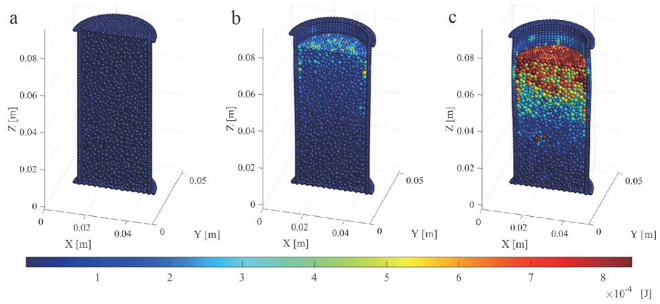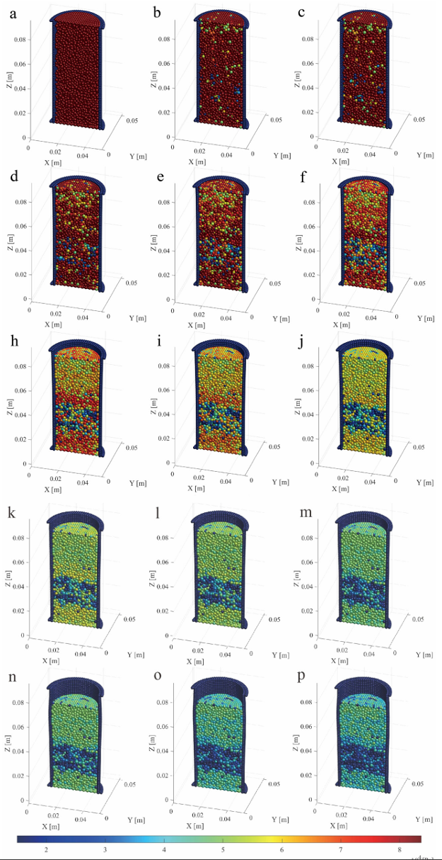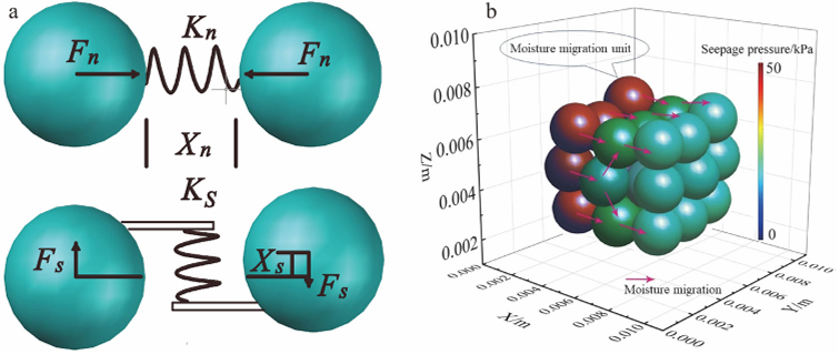 Fig.4 Schematic diagram of discrete element particle contact and water migration