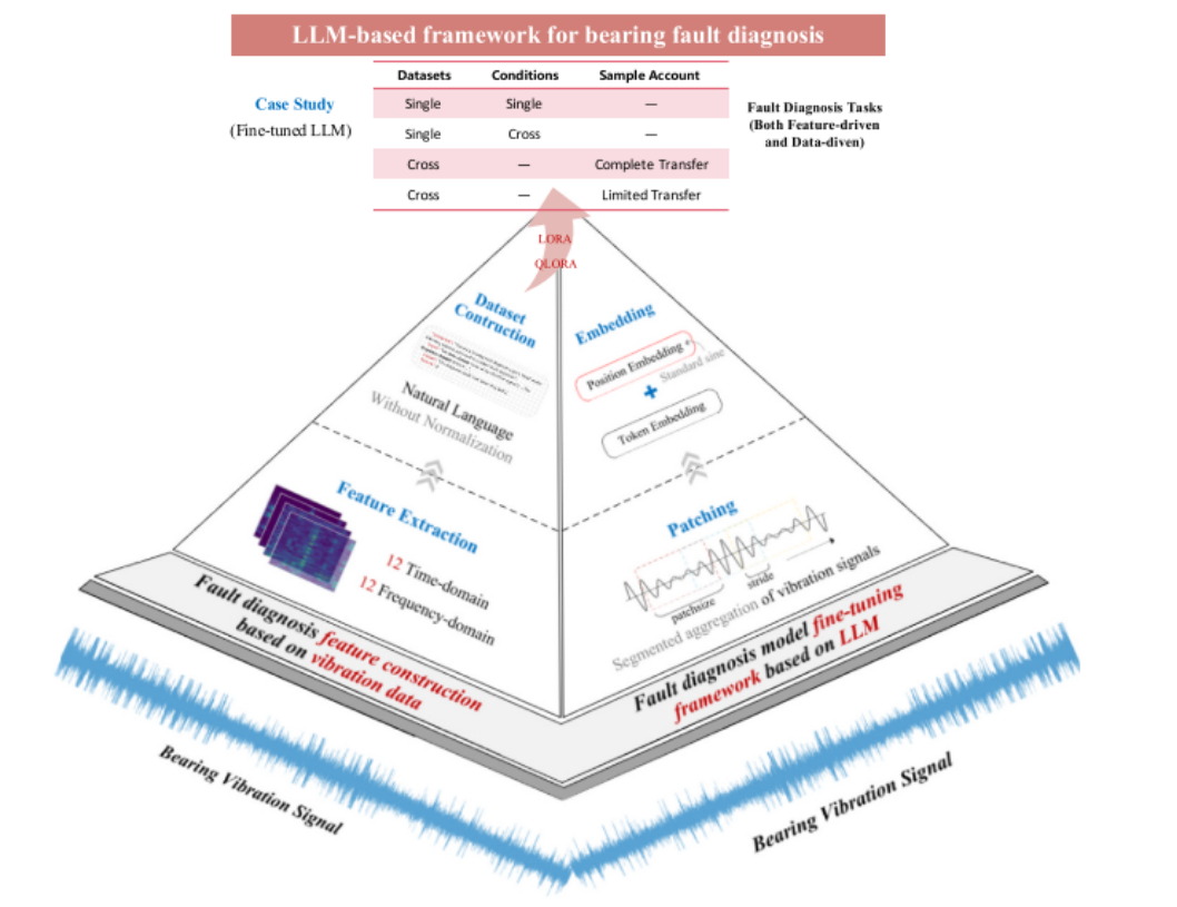 精准诊断轴承故障对维持旋转机械高效运行至关重要。然而,由于应用环境的多样化,传统诊断方法面临着跨工况适应性不足、小样本学习困难以及跨数据集泛化能力有限等挑战。这些难题制约了现有方法的有效性,限制了其应用范围。大语言模型为提升诊断模型泛化能力提供了新的可能,但如何将大语言模型与传统诊断技术深度融合以实现最优泛化效果,仍是当前待探索的研究方向。