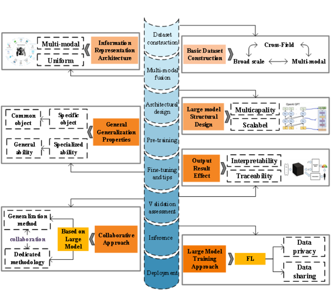 构建健康管理大模型时会遇到大模型发展遇到的共性问题,主要体现在效率、部署、训练规则等方面,同时也会面临不同于通用大模型和其它行业领域大模型的特异性问题。图5.1展示了健康管理大模型在未来发展过程中可能会遇到技术难点,下面将展开阐述。