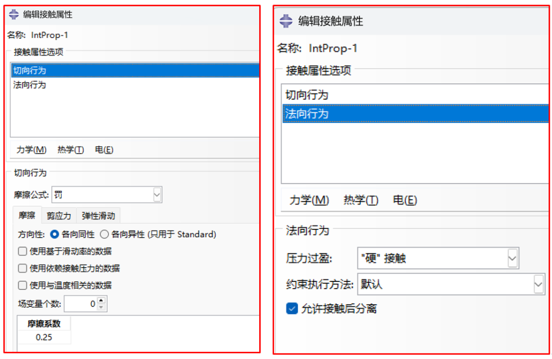 图9 接触属性