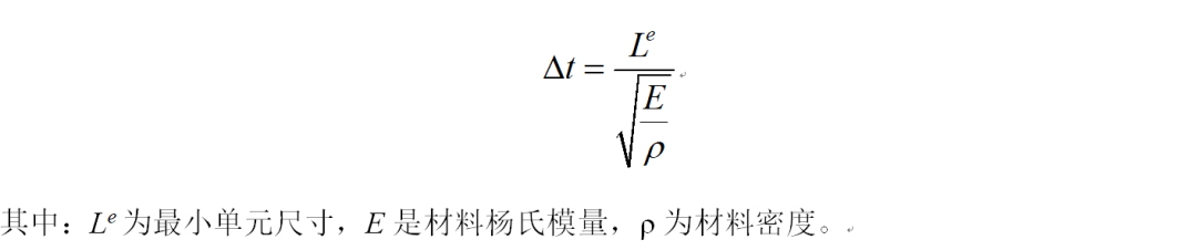 显式动力学分析(如碰撞、冲压等高度非线性问题)中系统的稳定时间增量非常小,大约在1e-9s~1e-7s 量级,远低于隐式分析的时间步长,之所以采用这么小的时间增量,是为了保证显式求解的精度,如果稳定时间增量过大,超出系统的稳定极限,会导致数值结果不稳定显式动力学过程稳定时间增量的估计公式为: