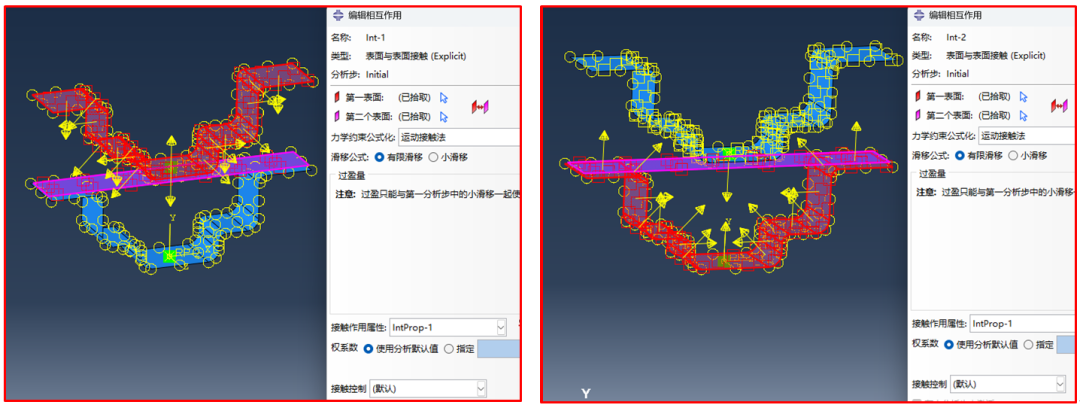 坯料冲压成型过程中,上、下模具都需要与坯料接触,因此需要设置两组接触对,接触类型使用“面面接触”,见图7。