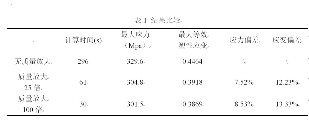 由结果可知,质量放大为原来质量的n倍,计算效率是原来的根号n倍,但是也会带来一定的结果偏差,还是要谨慎使用,需通过后处理验证惯性效应是否可控。
