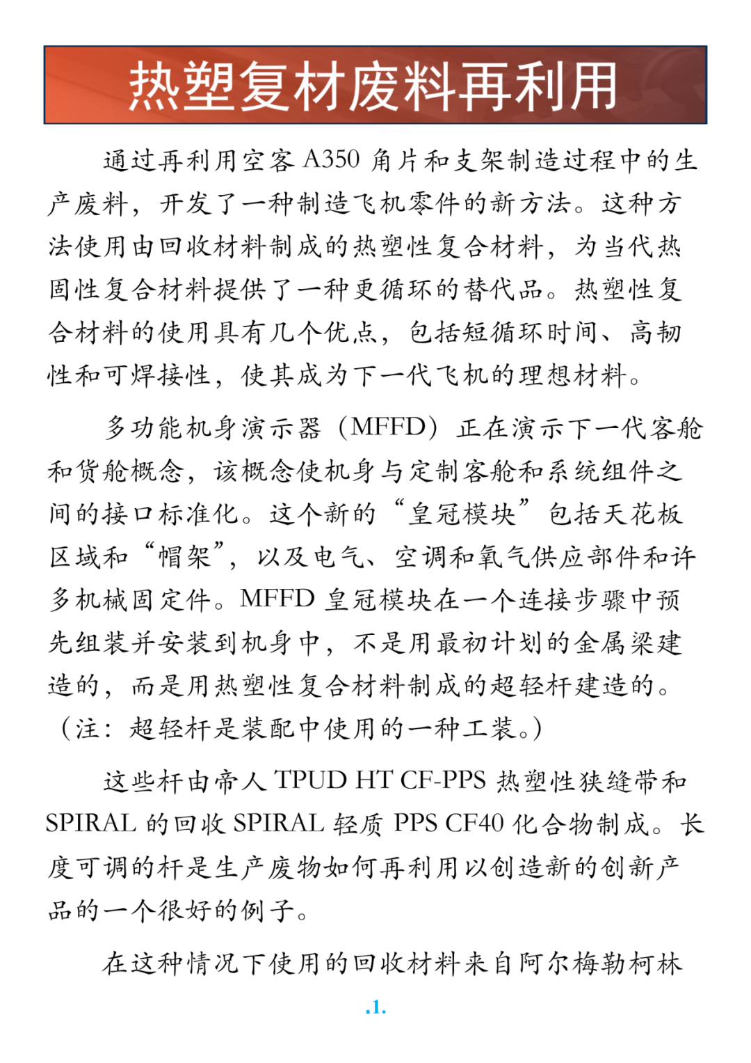 复材技术·美国热塑复材技术中心杨超凡简介:飞机制造高级专家,近年专攻民机复合材料。原航空工业部首批研究员级高级工程师,享受国务院特殊津贴。来源:碳纤维生产技术