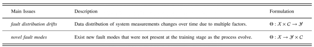 一方面,由于运行条件变化和性能退化等因素[40]-[42],动态系统通常在非平稳环境中运行,导致故障样本的分布发生一定程度的变化。一个被称为概念漂移(concept drift)的关键现象经常被观察到。实际上,工业应用通常涉及混合漂移类型,这意味着多种类型的漂移可以同时发生[44],[45]。在机械系统中,设备的运行可能由于部件的磨损和老化而导致故障模式和频率发生变化,从而改变故障数据的数据分布。在化学系统中,过程参数的调整、原材料的变化或环境条件的波动可以改变系统的运行状态,从而影响故障分布。这主要是由于在不同条件下反应过程和设备性能的变化所致。在现实生活场景中,上述漂移的发生可能导致数据分布发生变化,从而影响基于机器学习的故障诊断方法的实时性能。增量学习方法使诊断模型能够实时更新,适应故障分布变化,从而提高系统可靠性和稳定性,减少误报和漏报,优化维护计划,并降低设备维护成本。另一方面,新型故障模式的出现对传统的FD方法构成了重大挑战。新材料、新技术的应用以及不断变化的运行环境可能导致以前未见过的故障模式[46]-[48]。在机械系统中,新材料和制造技术的应用可能由于材料特性和新技术的复杂性而引入新的故障模式。在化学系统中,新化学过程或催化剂的引入可能导致新故障模式的出现,因为这些新过程和催化剂在初始运行期间可能揭示未知的故障风险。如果诊断模型不能及时识别和适应这些新型故障模式,严重的故障可能无法被检测到,从而损害系统安全[43]。在实践中,大多数情况下,模型需要在新故障模式出现时快速学习和更新,这增强了灵活性和准确性。因此,它们提供了对设备健康状况的全面监控,并有助于预防潜在的重大故障。