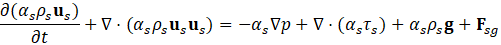 Fluent的双欧拉模型采用连续介质形式描述气固相动量方程: