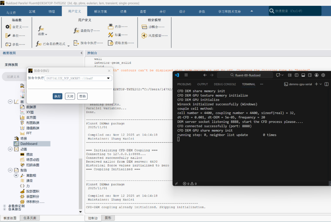 Fluent与DEMMS通过 Socket TCP/IP 通讯机制实现实时数据交换: