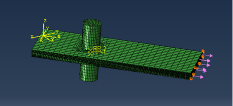 接头模型如下,圆孔处的连接件设置为刚体,结构受单向拉伸载荷。
