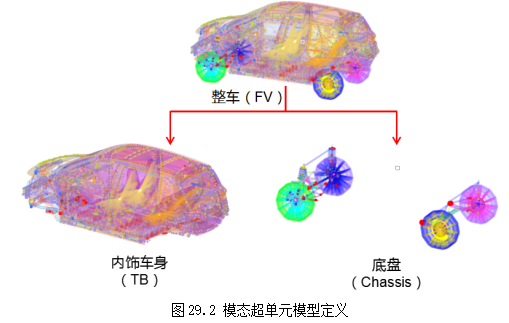 典型的CDS超单元设置如下图所示,需要设置CDSMETH卡片及工况引用,模态分析方法METHOD及分析频率FREQUENCY。在模型中需要设置边界节点集为CSET,并设置子结构的各类阻尼。超单元中各种缩聚方法的界面处理区别如下所示: