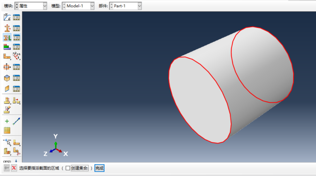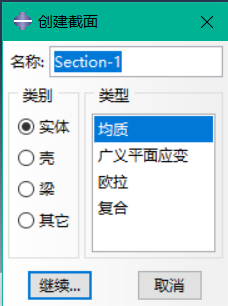 图6 创建截面Section-1,类别为“实体”、类型为“均质”,应用于材料Material-1