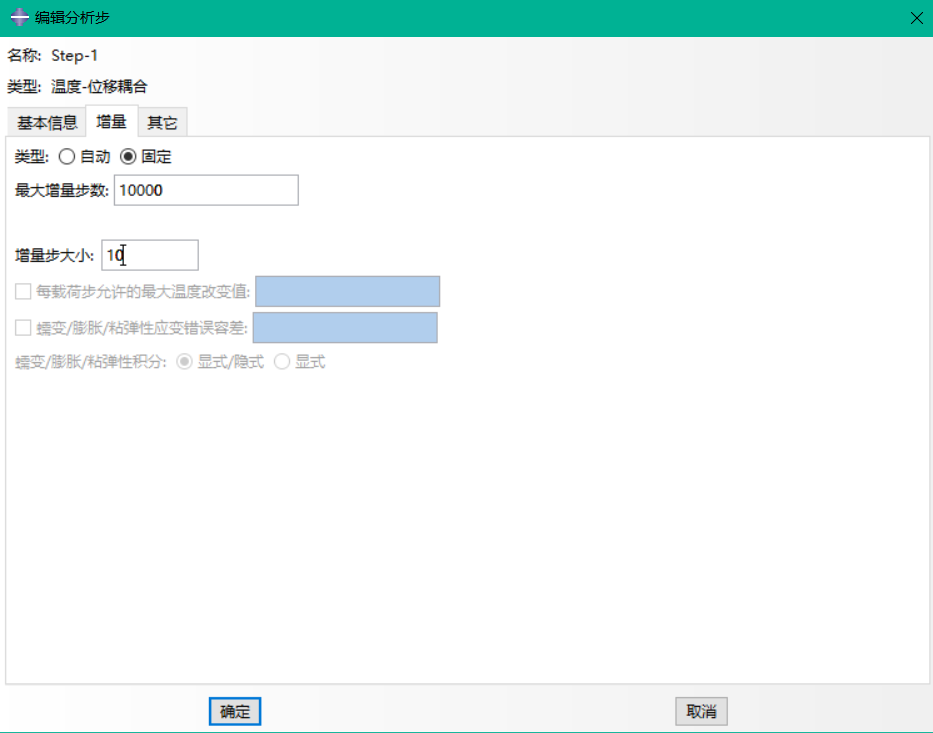 图13 设置增量步,最大增量步数设置为10000,增量步大小为10