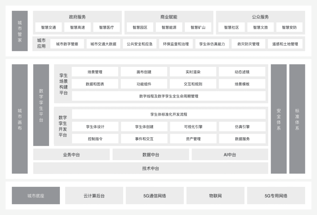 数字孪生模型又称为数字孪生体,其通过精准描述物理实体的几何、物理、行为、规则等多维度属性,在物理实体运行数据的实时驱动下,对物理实体的实际行为和运行状态进行真实刻画,并基于既定规律和相关规则,输出物理实体的仿真运行数据,从而在缺少物理实体后续运行数据的驱动时,通过模型和数据迭代运行的方式,仿真推演物理实体未来的运行状态和行为特征趋势,进而实现对物理实体的预测、评估、优化等重要服务。