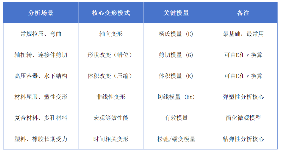 当你的模型涉及扭转、高压、或者材料发生塑性变形时,那个简单的“E”还够用吗?如果不够,我们又该请出“模量家族”的哪些成员来帮忙?