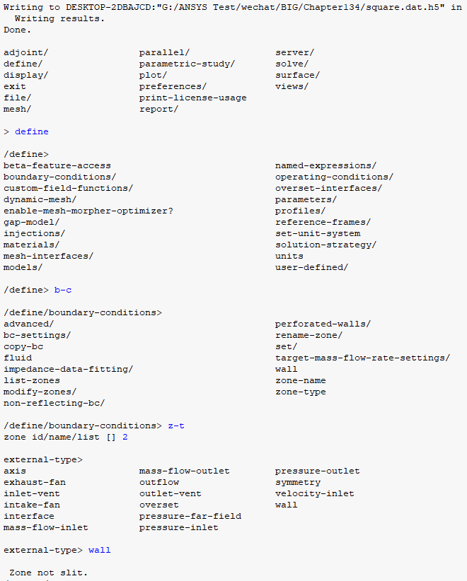 define/boundary-conditions/zone-type 2 wall 我们来解释这个代码,define/boundary-conditions是固定的